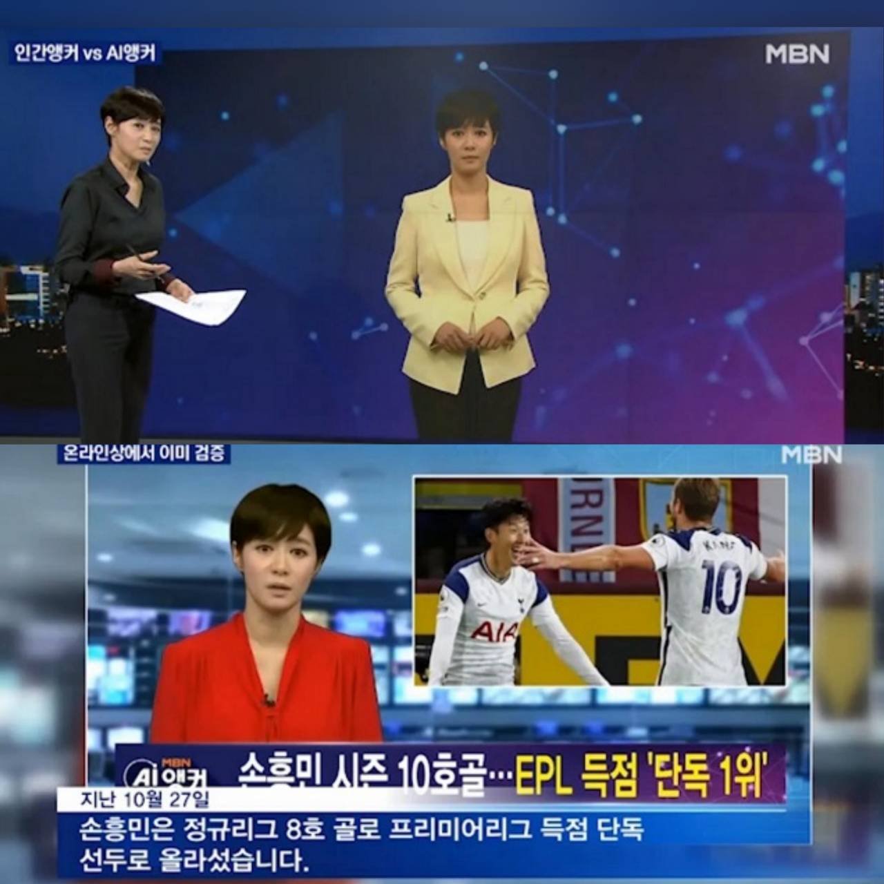 สถานีโทรทัศน์ MBN (พฤศจิกายน 2020) ได้พัฒนานวัตกรรมผู้ประกาศข่าวปัญญาประดิษฐ์ (AI Anchor) ที่หน้าที่รายงานข่าวออกอากาศจริง และผู้ประกาศข่าว Kim Joo-ha (มนุษย์) ต้นแบบ สามารถสื่อสารปฏิสัมพันธ์ตอบโต้กับ ผู้ประกาศข่าวปัญญาประดิษฐ์ ได้แบบ ณ เวลาจริง Realtime (ภาพที่ 11) สืบค้นและศึกษาเพิ่มเติมที่ https://www.youtube.com/watch?v=k8X_Em-NQn0