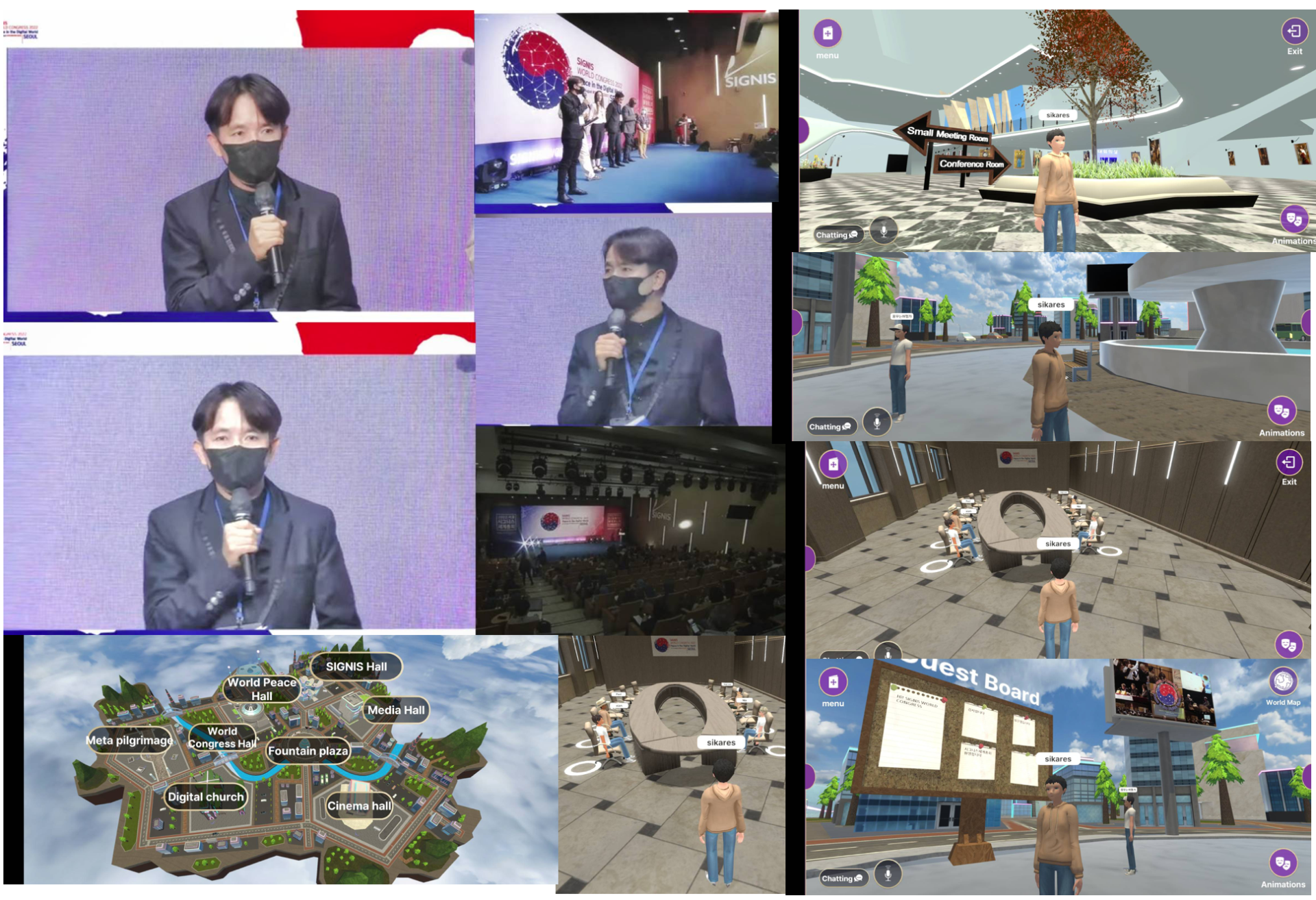 1) การประชุมแบบผสมผสาน ตัวตนจริง เข้าร่วมเสวนาแบบกายภาพ และ อวตาร์ เข้าร่วมประชุมแบบ เมตาเวิร์ส ในโลกดิจิทัล ณ มหาวิทยาลัยโซกัง โดยจากการพูดคุยแลกเปลี่ยนกับผู้พัฒนาระบบยืนยันว่า การประชุมแบบผสมผสานในรูปแบบนี้มีจัดขึ้น ในการประชุมทั้งภาครัฐและเอกชนของประเทศเกาหลีใต้โดยทั่วไปอย่างแพร่หลายในหลากหลายสาขา วาระ และบริบท