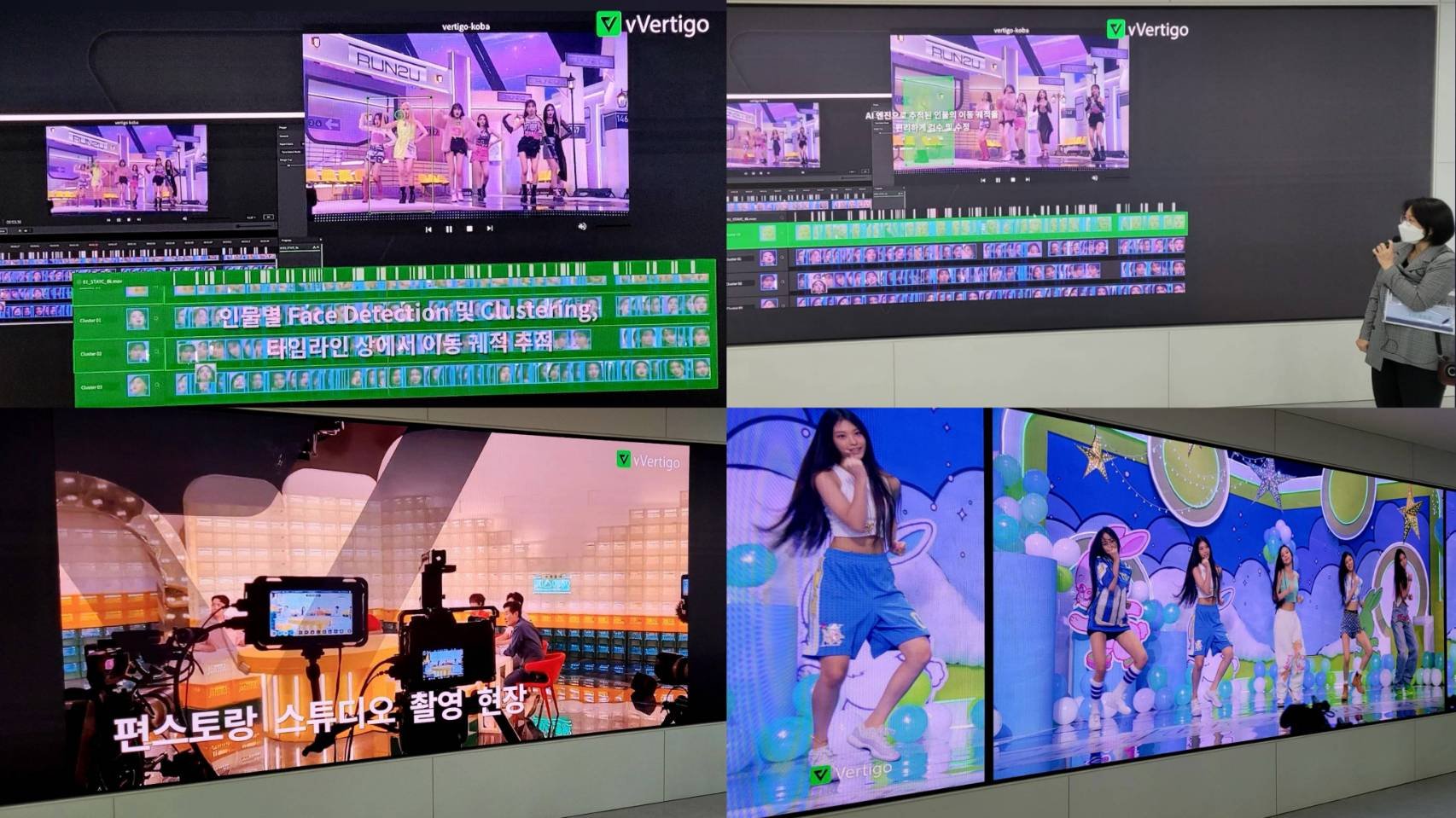 1) สถานีโทรทัศน์ KBS – Korean Broadcasting System ได้นำนวัตกรรมปัญญาประดิษฐ์ (AI-Artificial Intelligence) มาใช้ในกระบวนการผลิตรายการตลอดทั้งกระบวนการ (Pre-Pro-Post Production) ตั้งแต่ขั้นตอนการเตรียมการผลิตรายการ การถ่ายทำในสตูดิโอ การผลิตรายการ การตัดต่อ กระบวนการหลังการผลิต การแพร่สัญญาณภาพและเสียง การออกอากาศ การตลาดและการโฆษณา ในหลายรายการของทางสถานี ณ ปัจจุบันแล้ว (สิงหาคม 2022) โปรแกรมซอฟต์แวร์/เทคโนโลยีที่ใช้คือ vVertigo (ภาพที่ 9)
