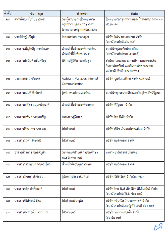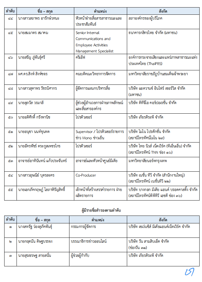 รายชื่อผู้มีสิทธิ์เข้ารับการอบรมหลักสูตรพัฒนาผู้ผลิตรายการ