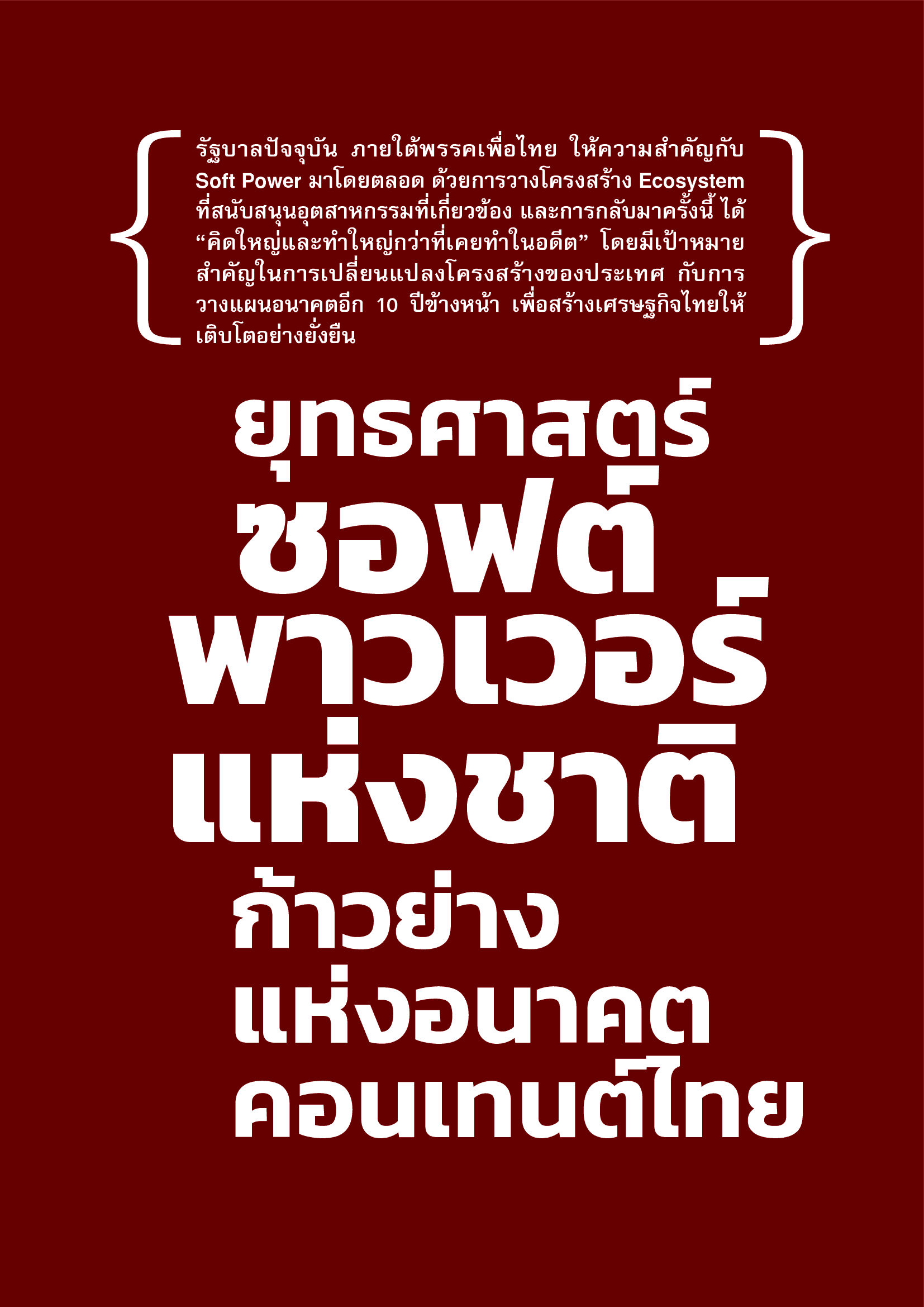 รัฐบาลปัจจุบัน ภายใต้พรรคเพื่อไทย ให้ความสำคัญกับ Soft Power มาโดยตลอด ด้วยการวางโครงสร้าง Ecosystem ที่สนับสนุนอุตสาหกรรมที่เกี่ยวข้อง และการกลับมาครั้งนี้ ได้“คิดใหญ่และทำใหญ่กว่าที่เคยทำอดีต” โดยมีเป้าหมายสำคัญในการเปลี่ยนแปลงโครงสร้างของประเทศ กับการวางแผนอนาคตอีก 10 ปีข้างหน้า เพื่อสร้างเศรษฐกิจไทยให้เติบโตอย่างยั่งยืน
