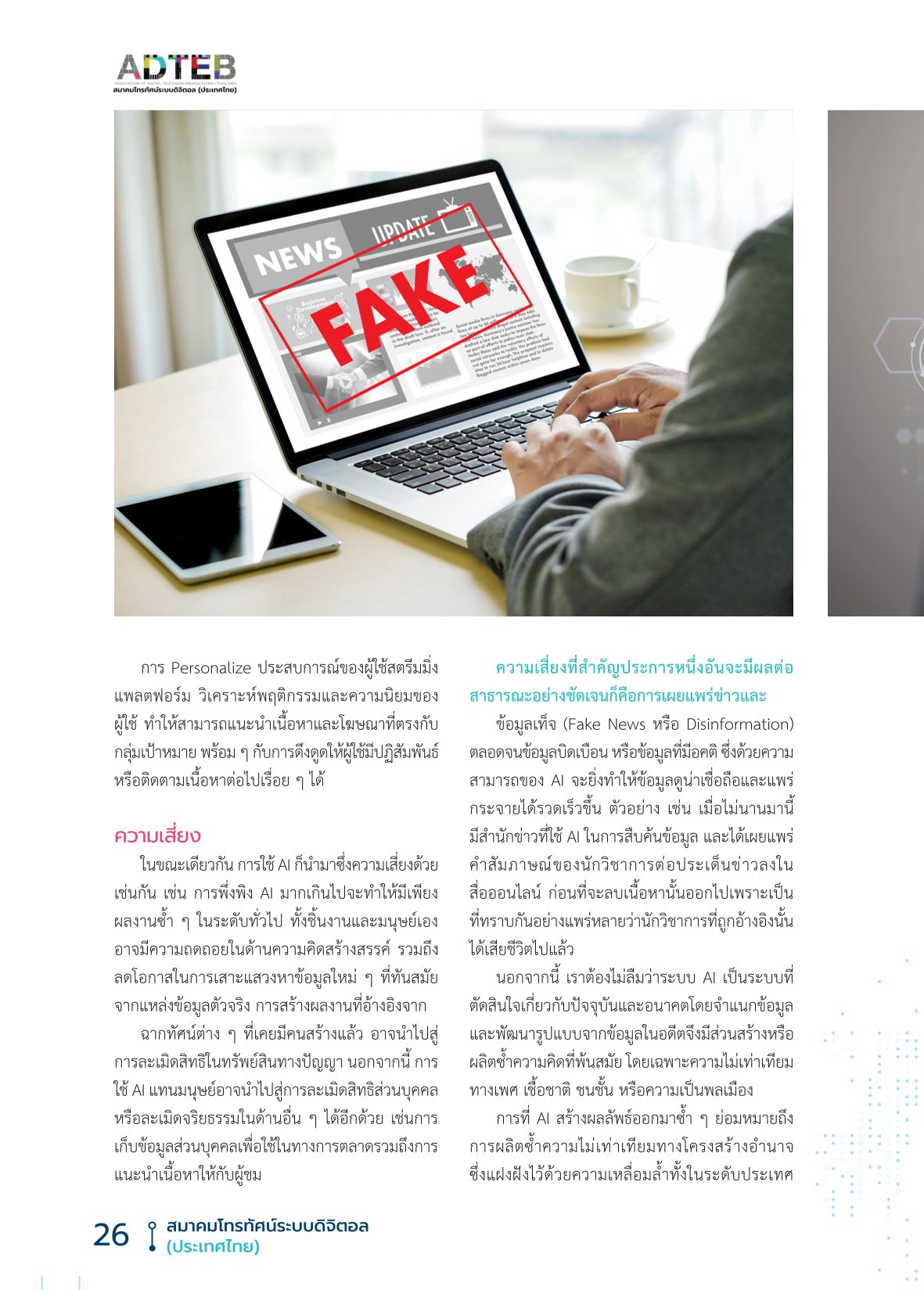 - แพลตฟอร์มดิจิตอลและผู้เล่นในอุตสาหกรรมต้องแสวงหาแนวทางร่วมมือกันแก้ปัญหาการละเมิดทรัพย์สินทางปัญญา และผลกระทบในทางลบอื่น ๆ จาก AI ได้