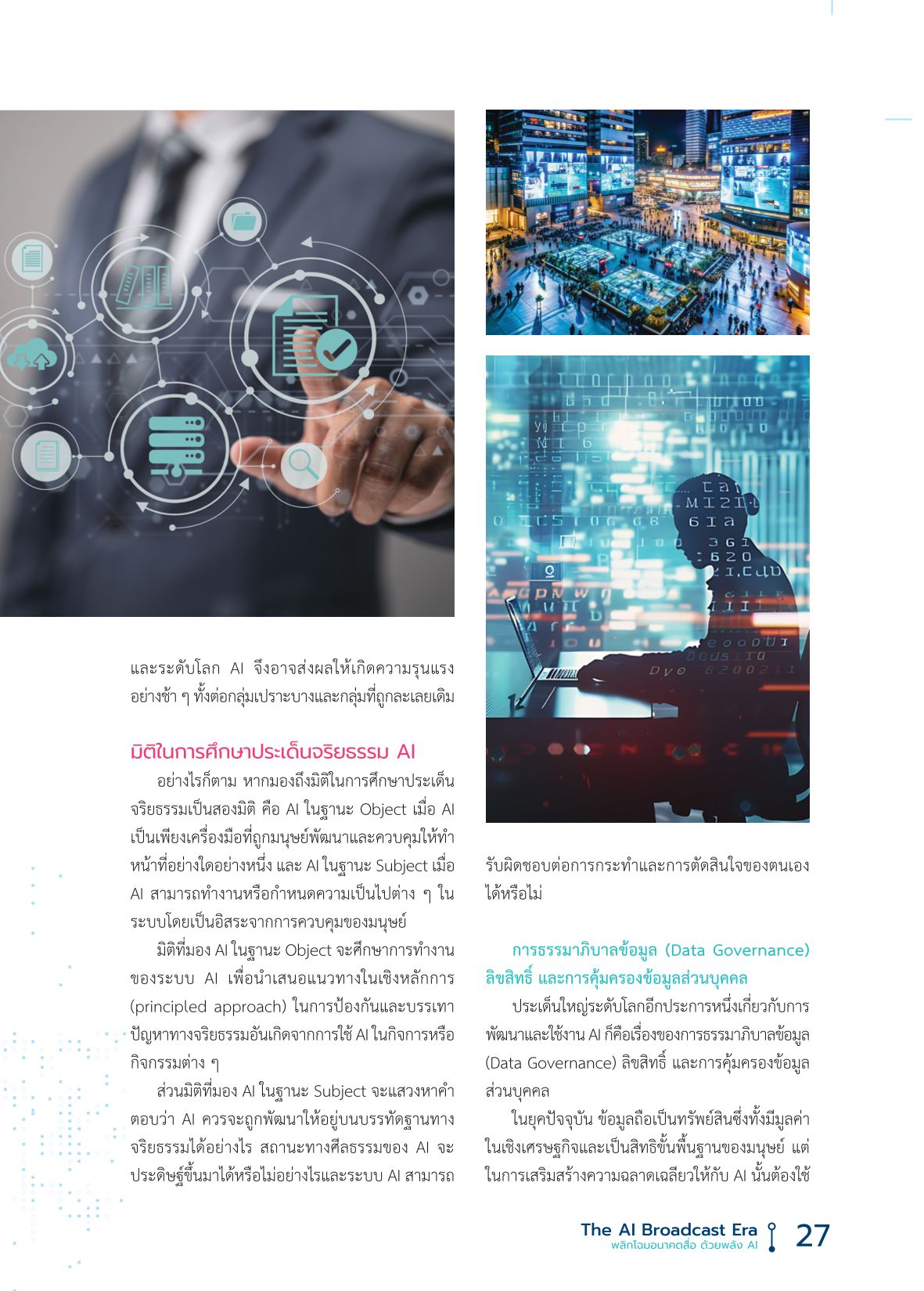 5. การสร้างความตระหนักรู้และส่งเสริมการมีส่วนร่วมของทุกภาคส่วนในสังคมในทั้ง 2 มิติของจริยธรรม AI (AI ในฐานะของ object และ AI ในฐานะของ subject)