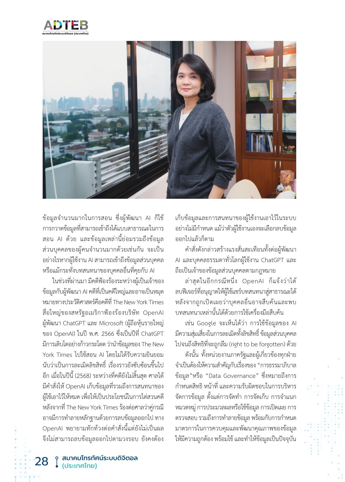 ประเด็นใหญ่ระดับโลกอีกประการหนึ่งเกี่ยวกับการพัฒนาและใช้งาน AI ก็คือเรื่องของการธรรมาภิบาลข้อมูล (data governance) ลิขสิทธิ์ และการคุ้มครองข้อมูลส่วนบุคคล