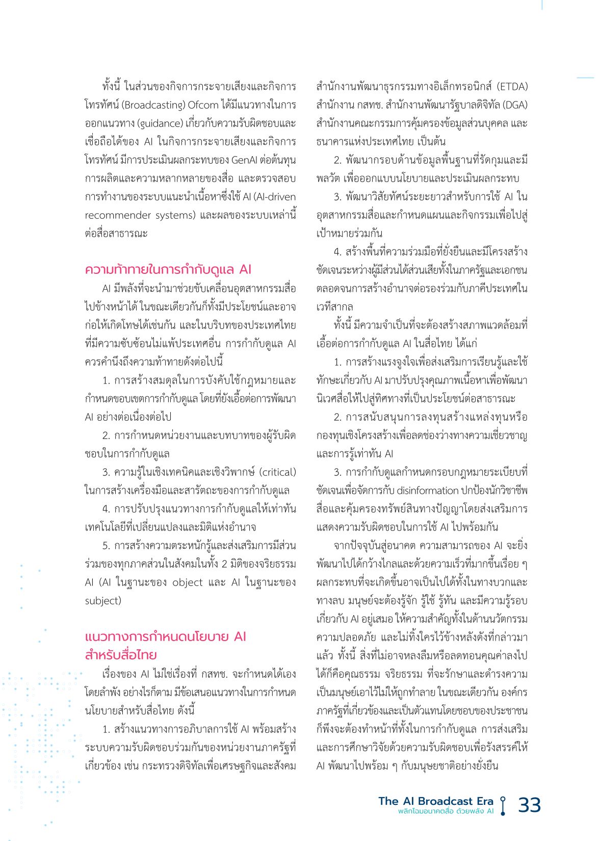 แล้วองค์กรกำกับดูแลกิจการโทรทัศน์ในต่างประเทศ มีแนวทางการกำกับดูแล AI อย่างไร
