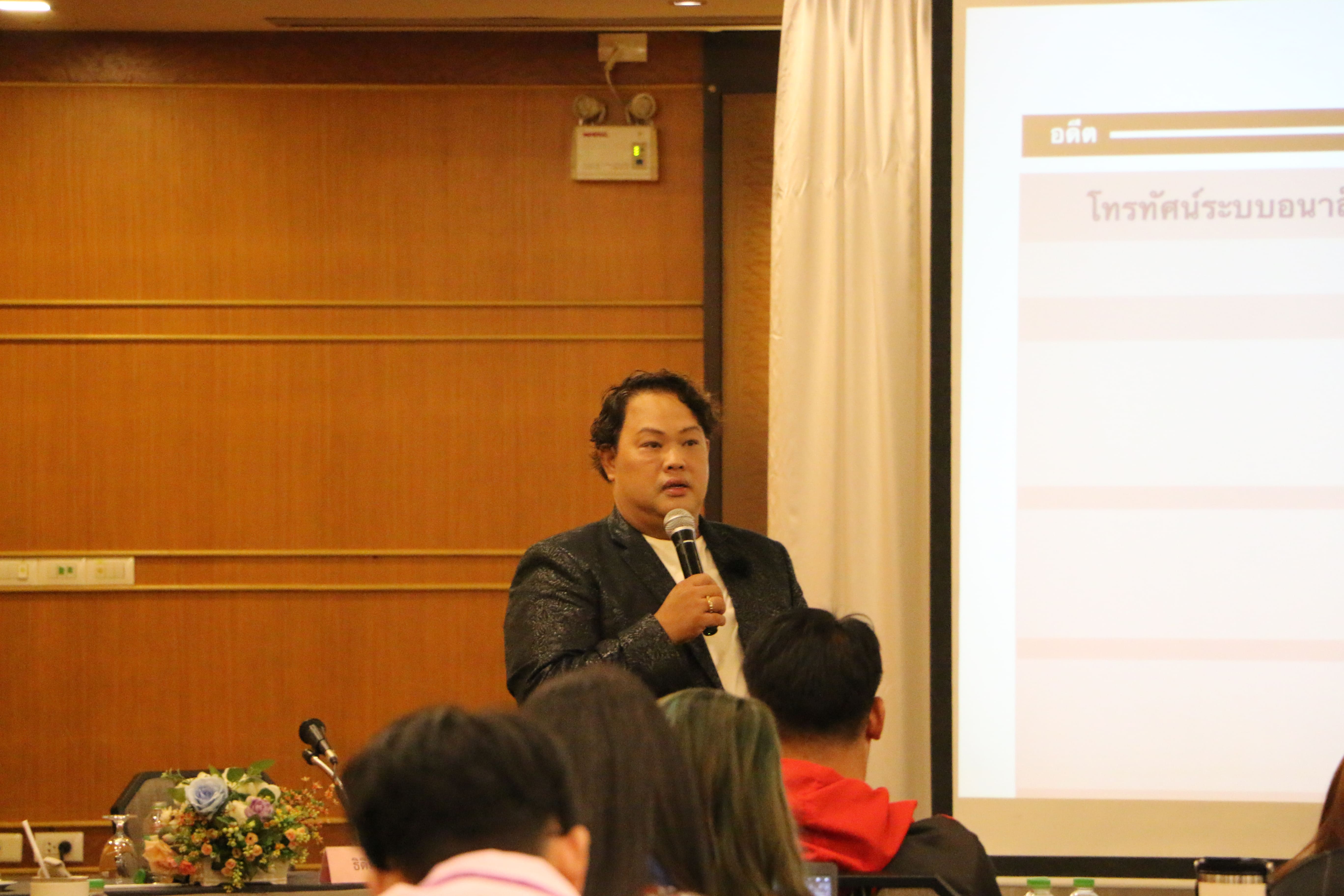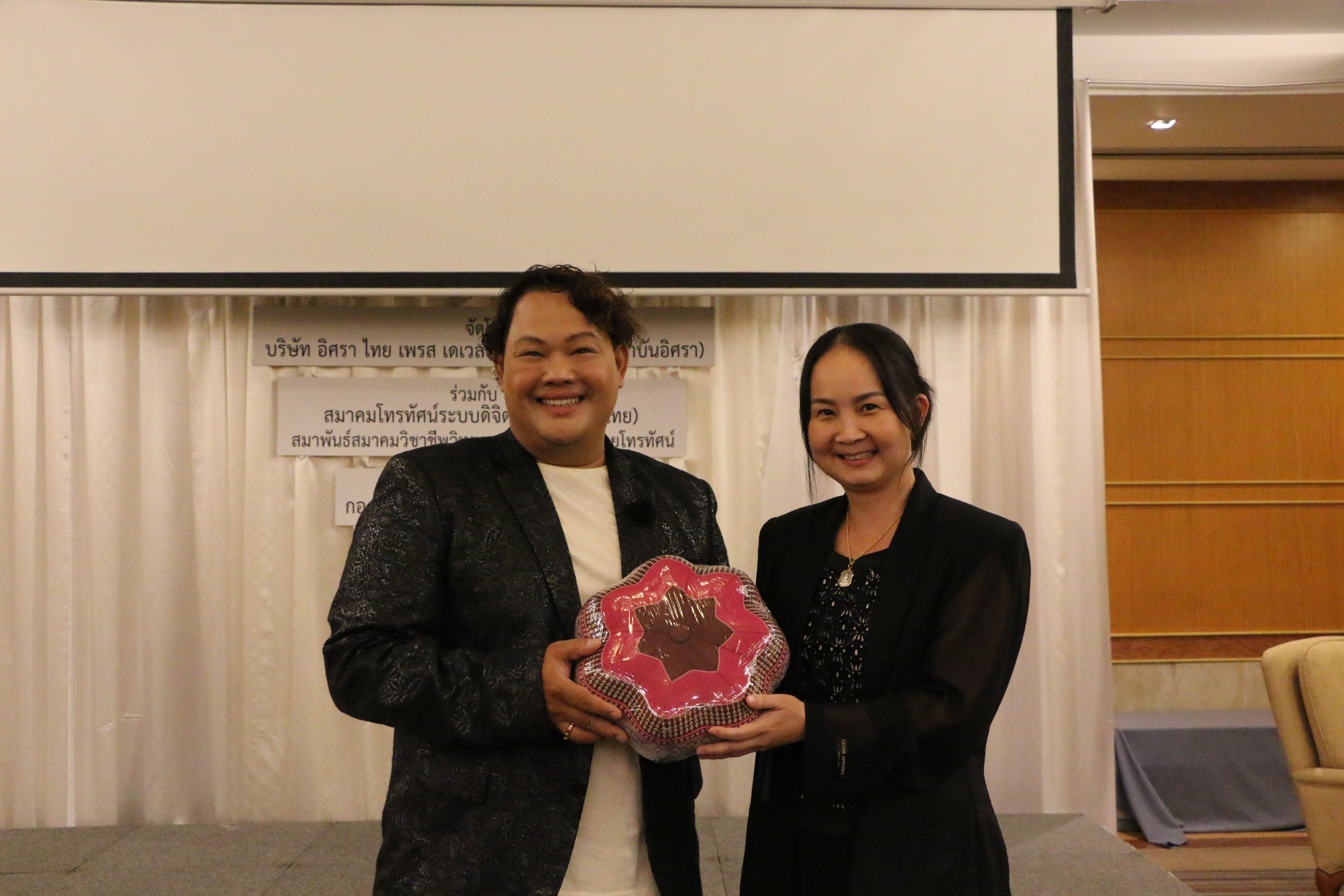 อบรมในครั้งนี้ ได้รับเกียรติจาก คุณธิติพร จุติมานนท์ Content Creator อิสระ และนักข่าวบันเทิงอาวุโส เป็นวิทยากรบรรยาย หัวข้อ “เทคนิคการผลิตรายการในแพลตฟอร์ มที่หลากหลาย” แก่ผู้เข้าร่วมอบรมหลักสูตร The Producer รุ่นที่ 2 โดย คุณณจิต สุรจารุสาร เป็นตัวแทนมอบของที่ระลึกแก่วิทยากร