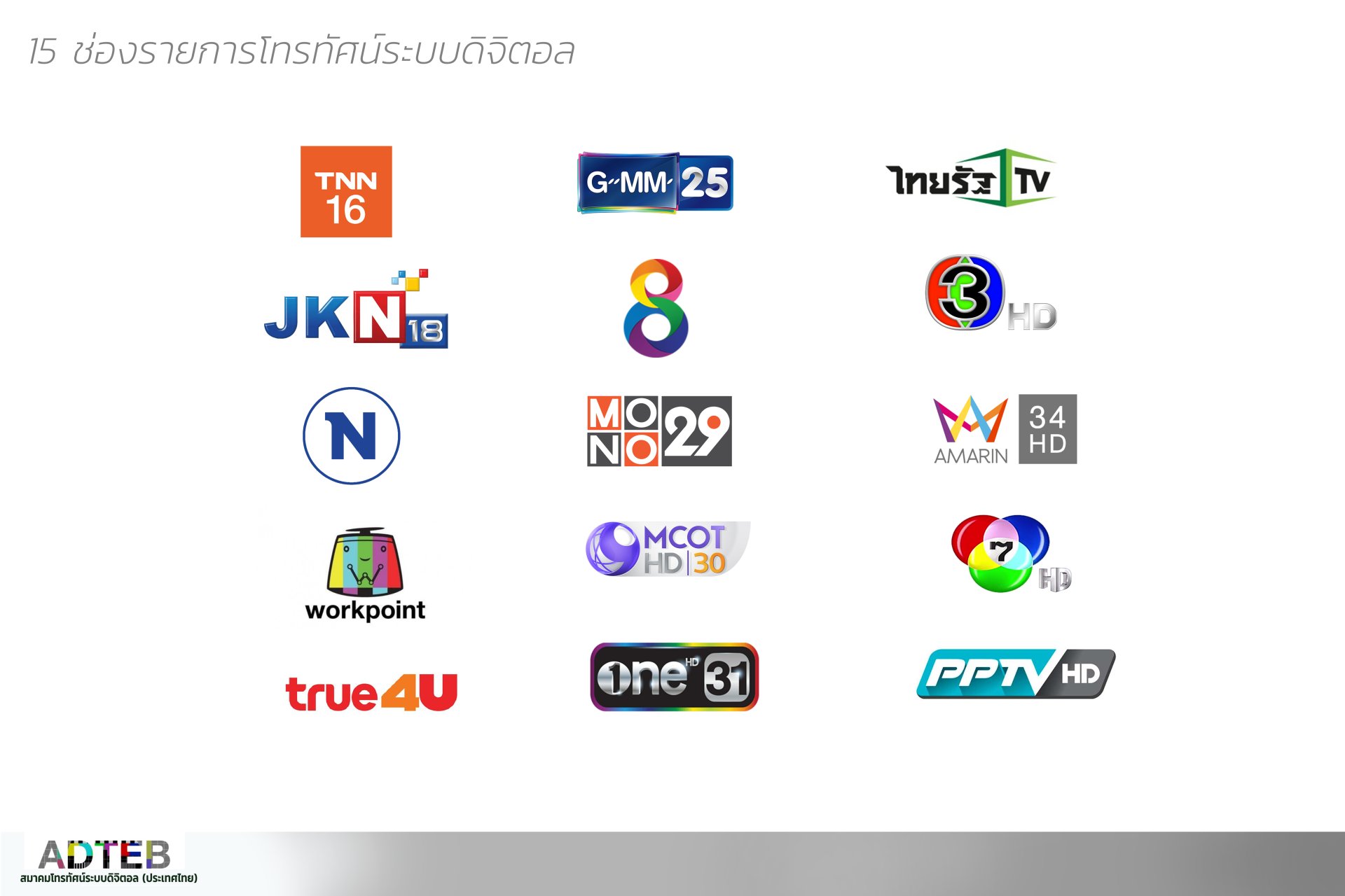 Subsequently, after the 2nd announcement to support the ratings of the digital television industry, there has been an increase in the level of cooperation among digital terrestrial television operators under business service licenses, with 15 more channels joining the association, consisting of (1) Thairath TV, (2) PPTV HD, (3) One 31, (4) GMM 25, (5) Nation TV, (6) NEW 18, (7) 3HD, (8) Mono29, (9) MCOT HD, (10) Amarin TV HD 34, (11) TNN 16, (12) True4U, (13) 7HD, (14) Channel 8, and (15) Workpoint TV 27.