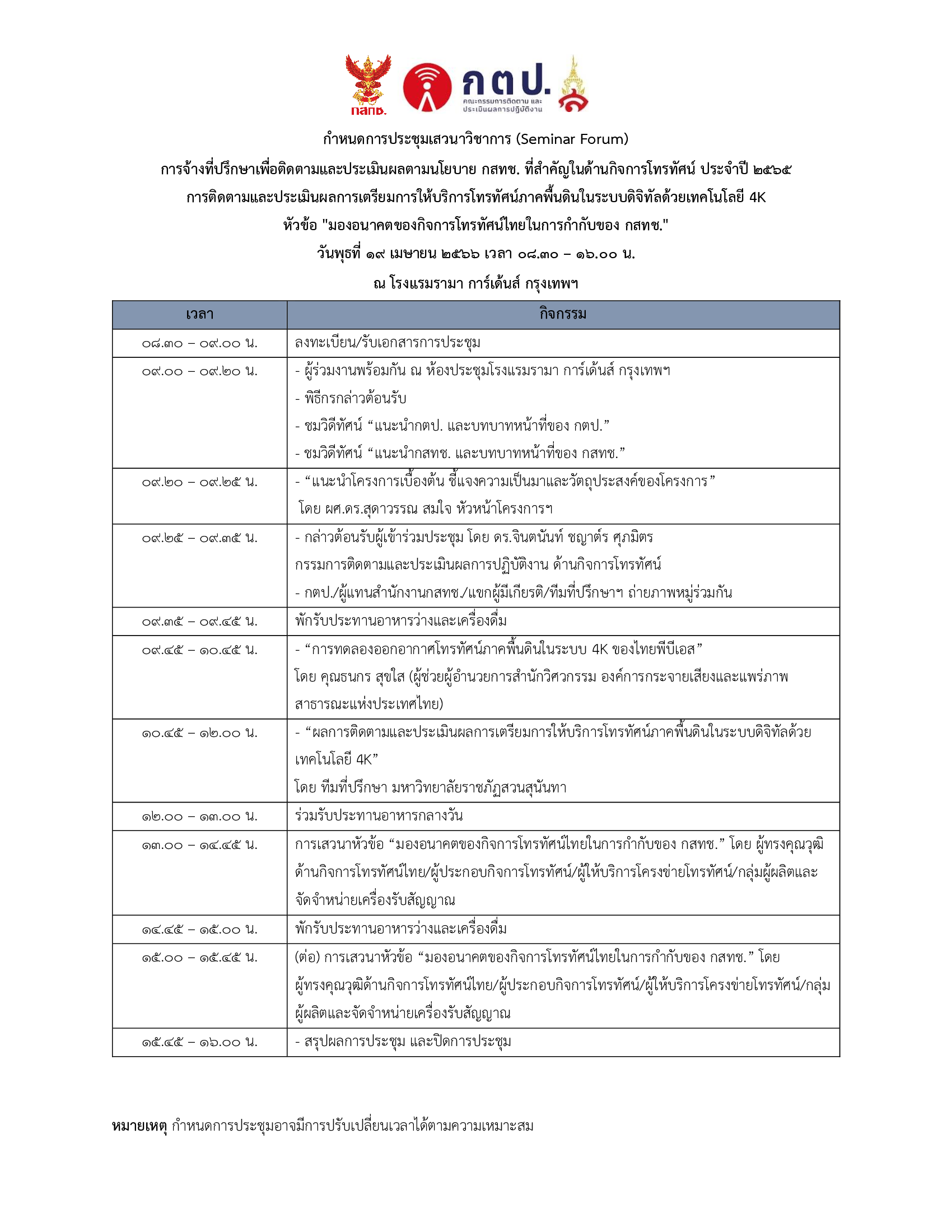 วันพุธที่ ๑๙ เมษายน ๒๕๖๖ เวลา ๐๘.๓๐ – ๑๖.๐๐ น.